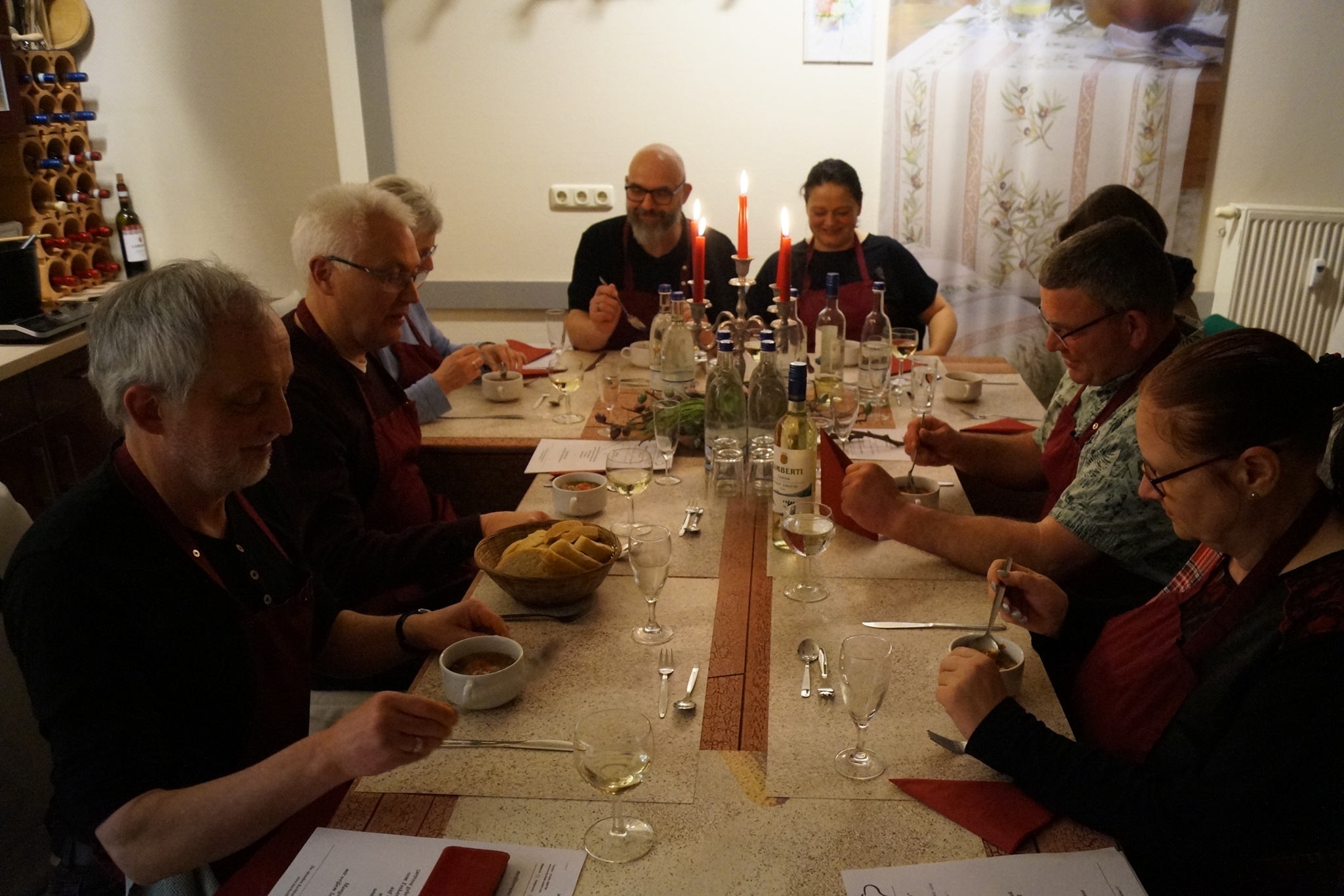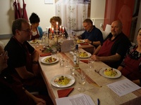 "Chi mangia solo crepa solo, chi mangia in compagnia vive allegria."